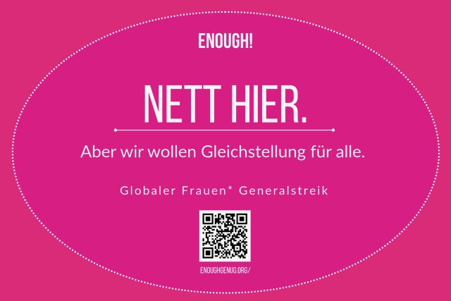 Jede Frau hat ihr „Genug“ und wohl genügend Anlass zum Streik. Dabei richtet sich der Frauenstreik nicht gegen Männer, sondern gegen Ungleichheit, Benachteiligung und einengende Rollenbilder. Er macht sichtbar, dass echte Gleichstellung allen zugutekommt. Denn auch Männer haben nicht genug – nicht genug Freiheit, Gefühle zu zeigen; nicht genug Raum, Care-Arbeit selbstverständlich zu übernehmen; nicht genug Abstand zu Leistungserwartungen, Rollenklischees und überholten Geschlechtervorstellungen.